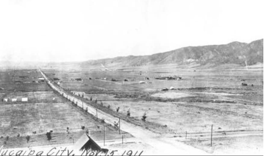 Looking down Yucaipa Blvd in 1911 notice all the open land. Notice the white tents on the left side.